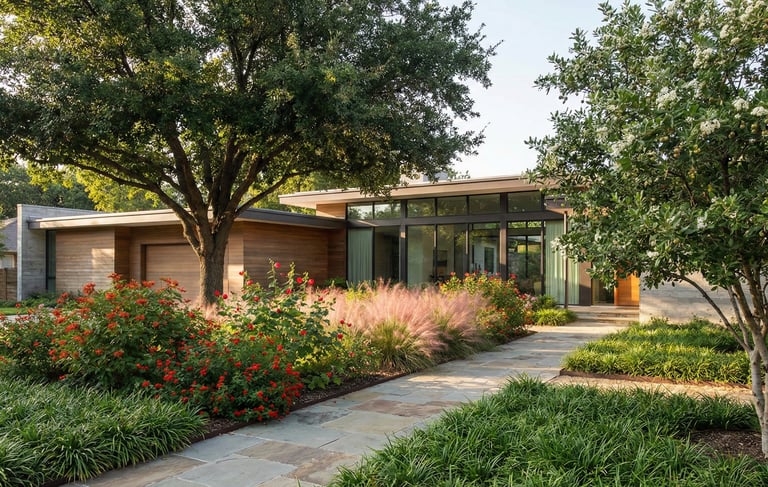 Native & Drought-Tolerant: Texas Ebony, Anacua, Desert Willow, Mexican Olive. These provide excellent shade and visual anchor points.
